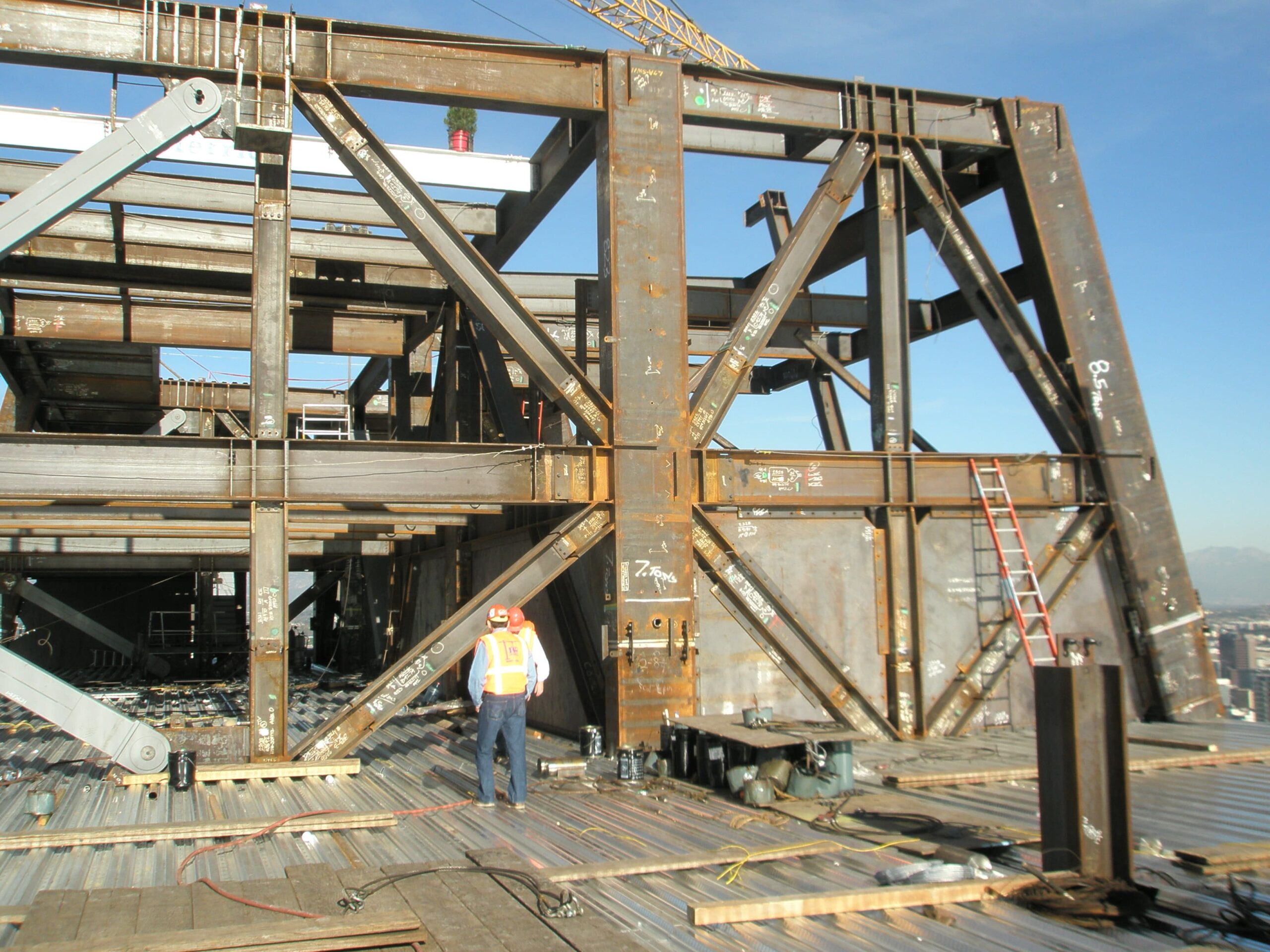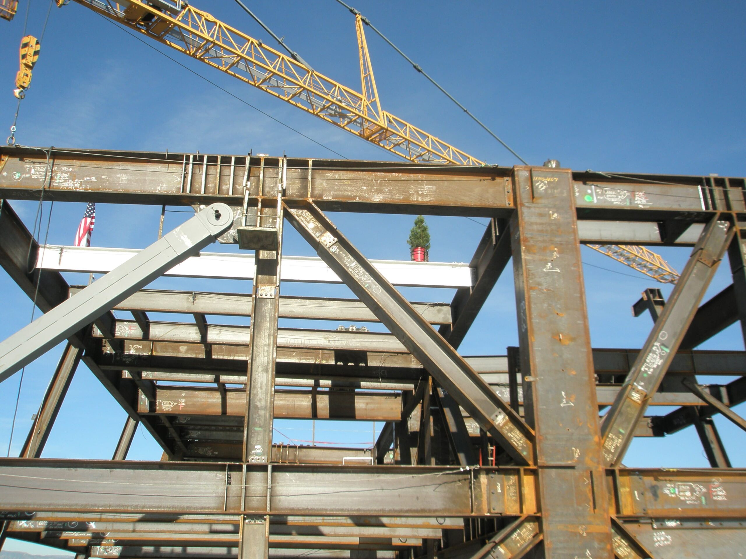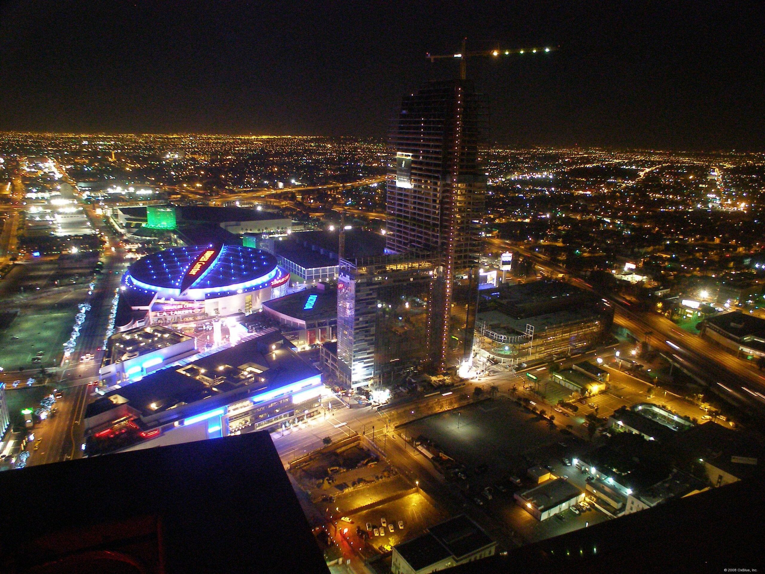 Completed in 2009, the LA Live Hotel and Residences is a 54-story, 1,001-room two-hotel hybrid tower. This skyscraper contains a JW Marriott and a Ritz-Carlton along with 224 residences in the Ritz Carlton condominium section of the tower. Constructed in 2008, it is the first building in Los Angeles to use a steel-plate shear wall design. This reduces the building’s overall weight by 30% compared to poured concrete walls, increases window area, and adds 20,000 square feet of useable space. The reduced weight also reduced the foundation work required, cutting both time and cost from the project. The erection and weld-out of the structural steel were completed 2 months ahead of the original schedule.