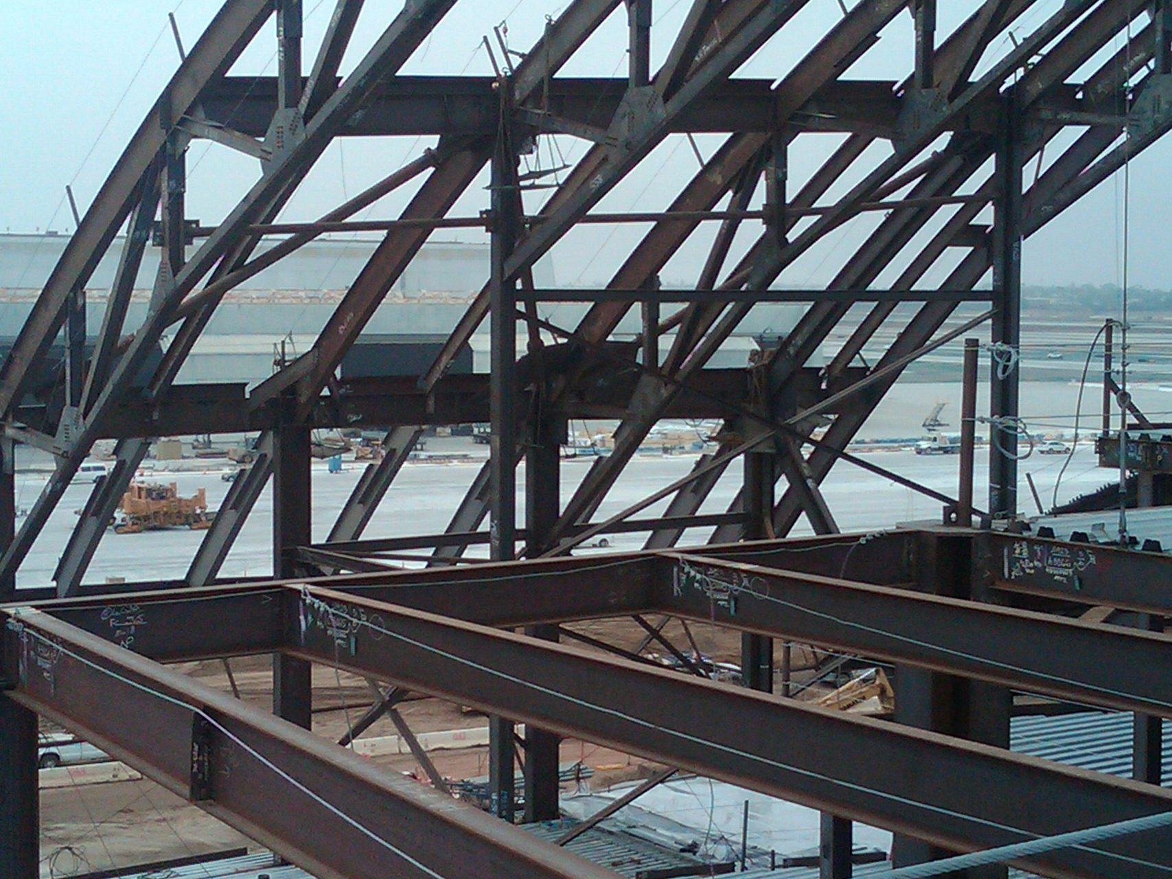 The 1.2 million square foot addition includes eighteen new gates, nine able to accommodate Airbus 380, Boeing 747 and Boeing 787 aircraft. The architectural features and functions of the building challenged conventional structural solutions for lateral stability, so a curved moment frame with non-orthogonal moment connections was developed. This geometric shape had never before been used for a moment frame in high seismic regions. The building is designed to achieve LEED Platinum certification.
