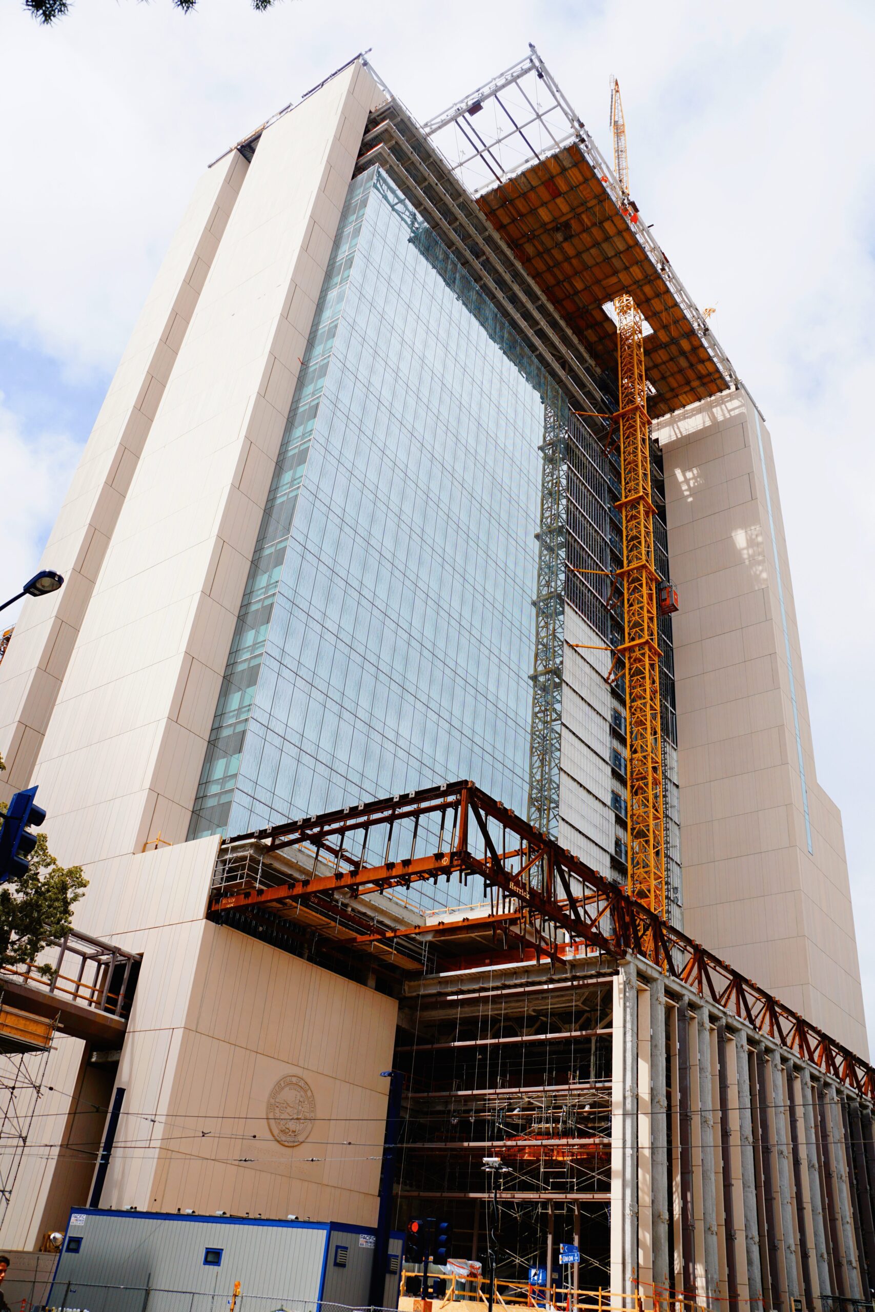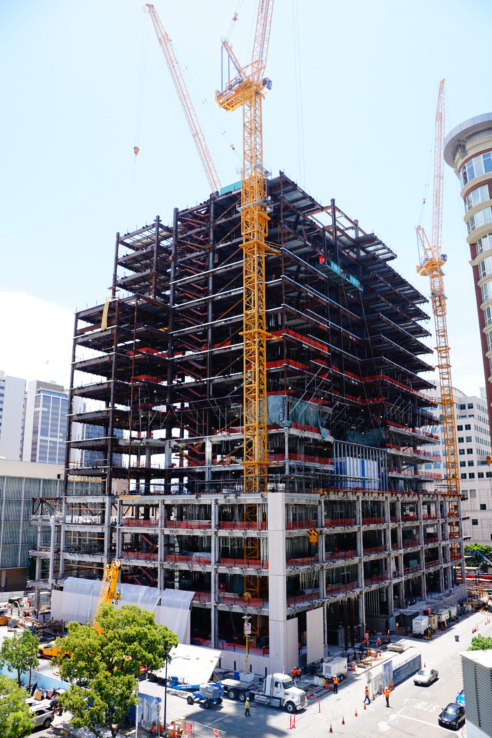 The 704,000 square foot building will house 71 courtrooms at Union and C streets. It features significant improvements in security, as well as better safety and improved access and efficiency for county residents. A pedestrian bridge connects the three-story lobby atrium to the nearby Hall of Justice, which continues to be used for civil cases.