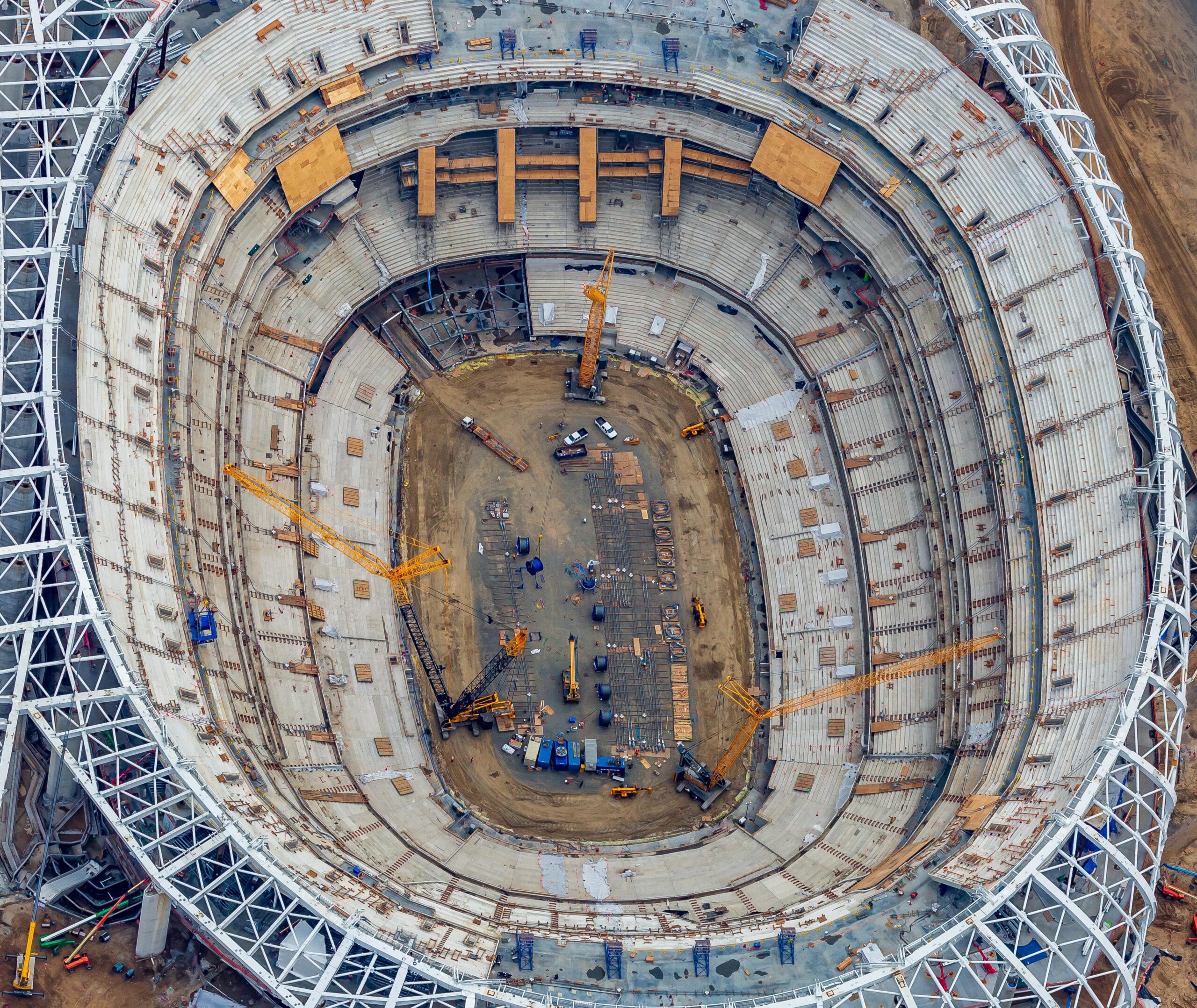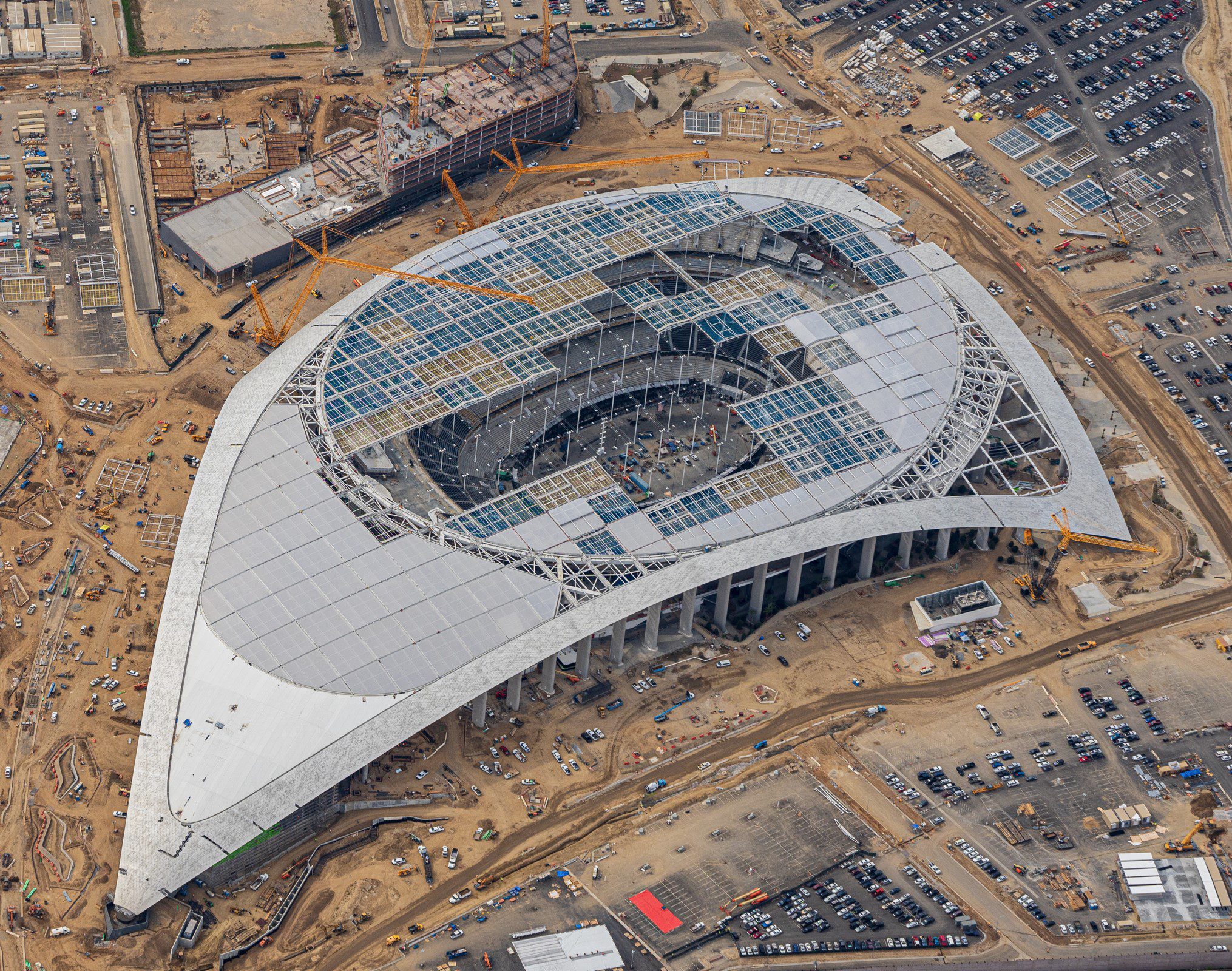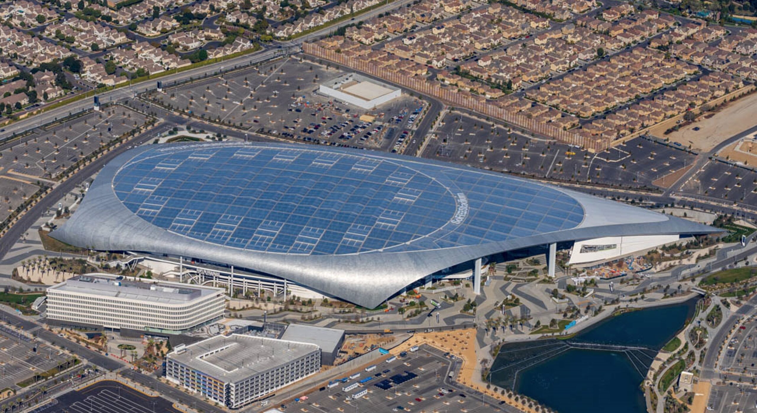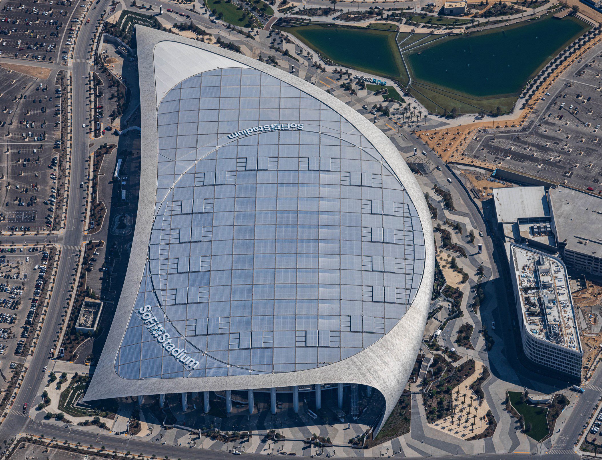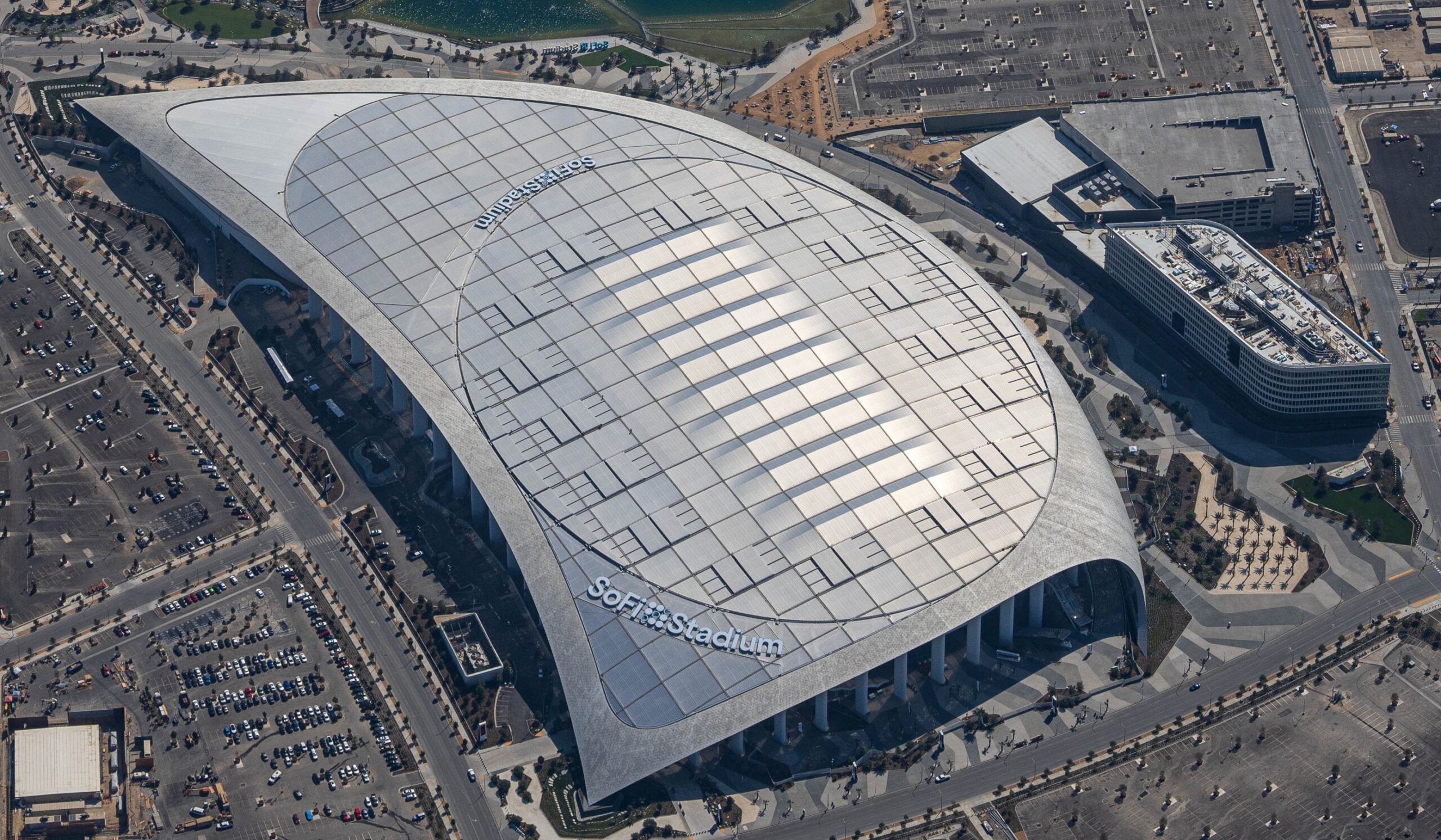 The new $4 billion SoFi Stadium is an unprecedented and unparalleled 298 acre sports and entertainment destination built in Inglewood, CA, by Los Angeles Rams Owner/Chairman E. Stanley Kroenke. The stadium is the centerpiece of the live-work-play development, located at the site of the former Hollywood Park Racetrack and Los Angeles Forum.